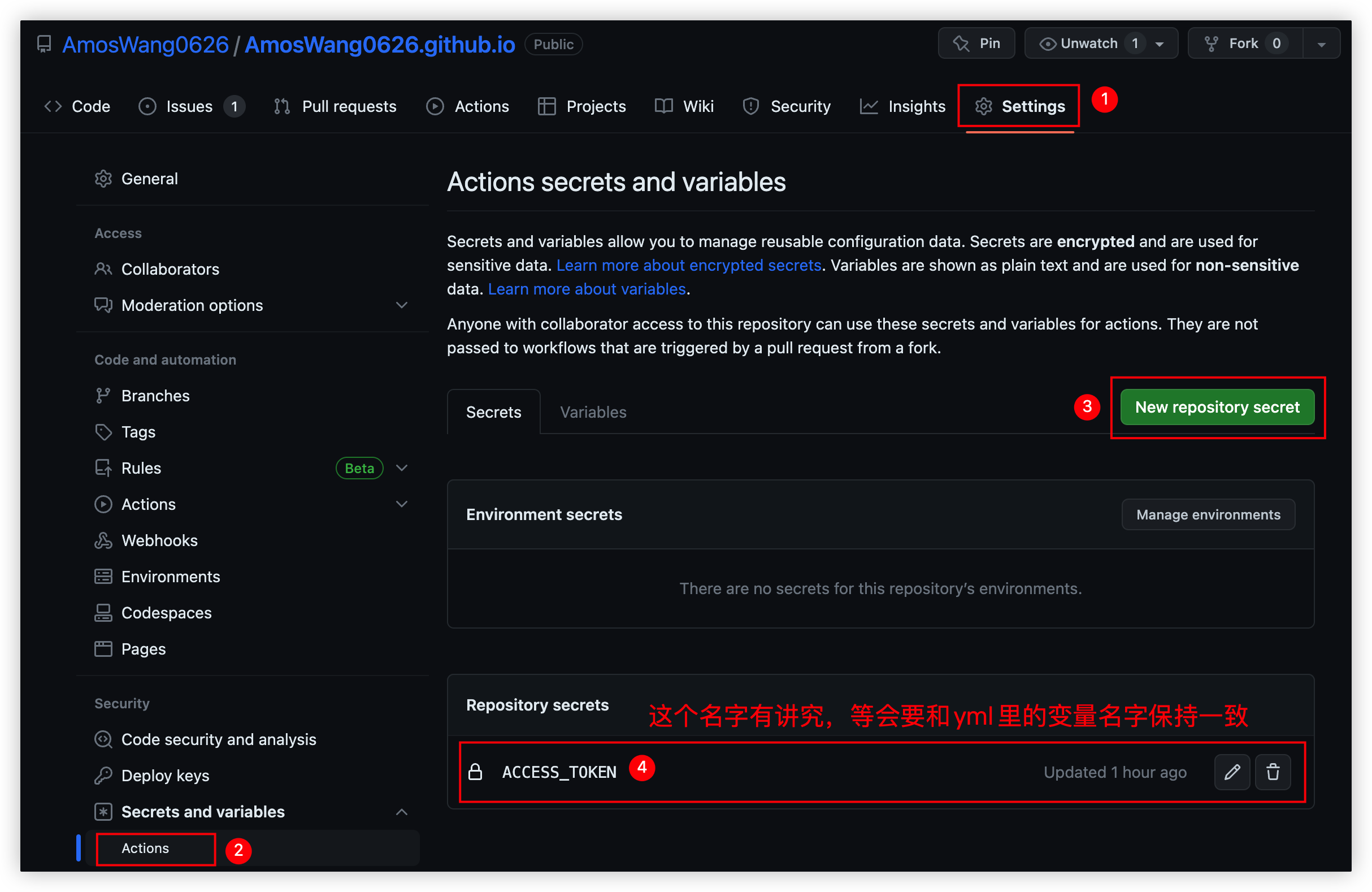 名字就取 ACCESS_TOKEN ,值就是上一步生成的密钥。