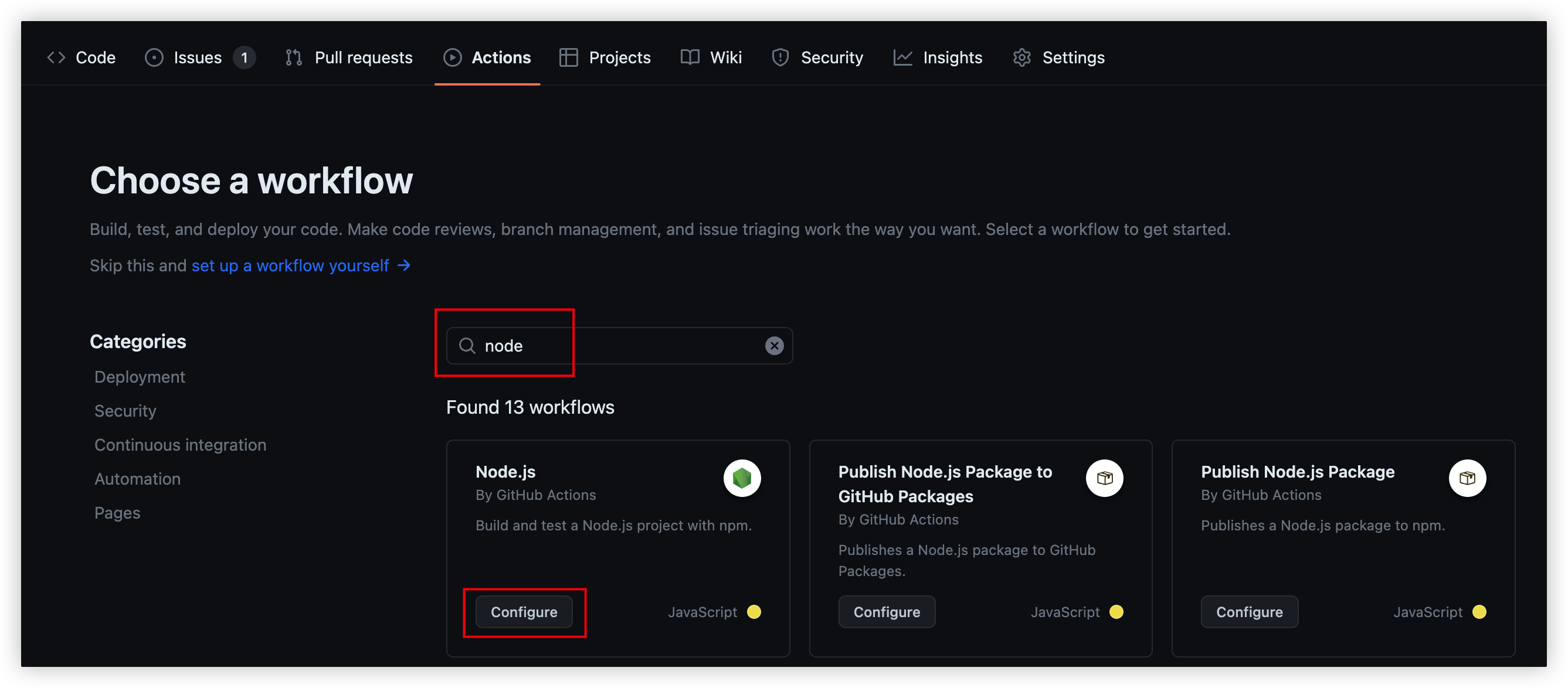 这里前端项目是 node.js 技术栈,就搜索 node 了